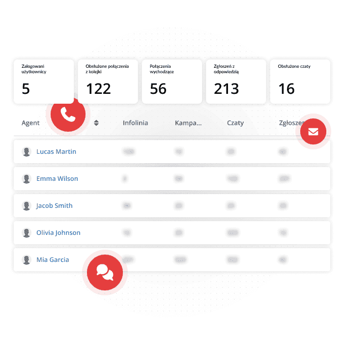 Potrzebujesz pełnej kontroli nad tym, co dzieje się w Twoim Contact Center – tu i teraz? Niezależnie od tego, czy zarządzasz zespołem, czy wspierasz Agentów operacyjnie, teraz wszystko będziesz mieć pod ręką. Nie będziesz musieć sprawdzać tego w kilku miejscach, wszystkie kluczowe dane z kanałów takich jak telefon, czat, zgłoszenia czy kampanie znajdziesz w jednym miejscu! Reaguj, planuj, optymalizuj, a przede wszystkim wiedz, zanim zapyta ktoś inny.